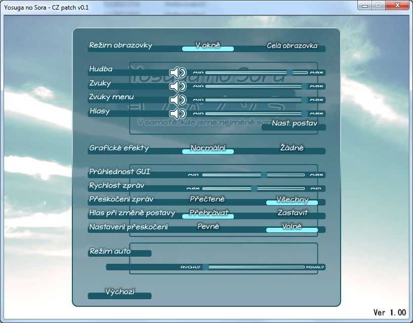 Obsah archivu stačí extrahovat do složky se hrou. Pokud vám hra nejde spustit, ujistěte se, že máte systém přepnutý do Japonštiny - Yosuga no Sora je přece jen starší hra a nepodporuje Unicode. Lepší varianta je ale použít Locale Emulator nebo Microsoft AppLocale (pouze pro Windows XP - 7).